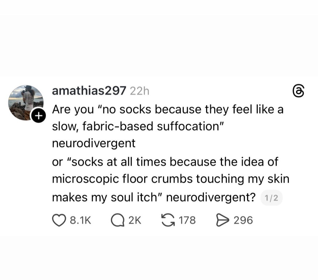 LadyButterfly she/her@piefed.blahaj.zone to Autism@lemmy.worldEnglish · 3 days agoWhich are you?piefed.cdn.blahaj.zoneimagemessage-square82fedilinkarrow-up1407arrow-down19