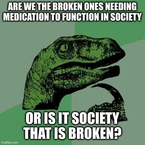 An animal just needs to survive. Would you have been able to survive in nature with your condition, but not in society? Then it’s society’s fault.