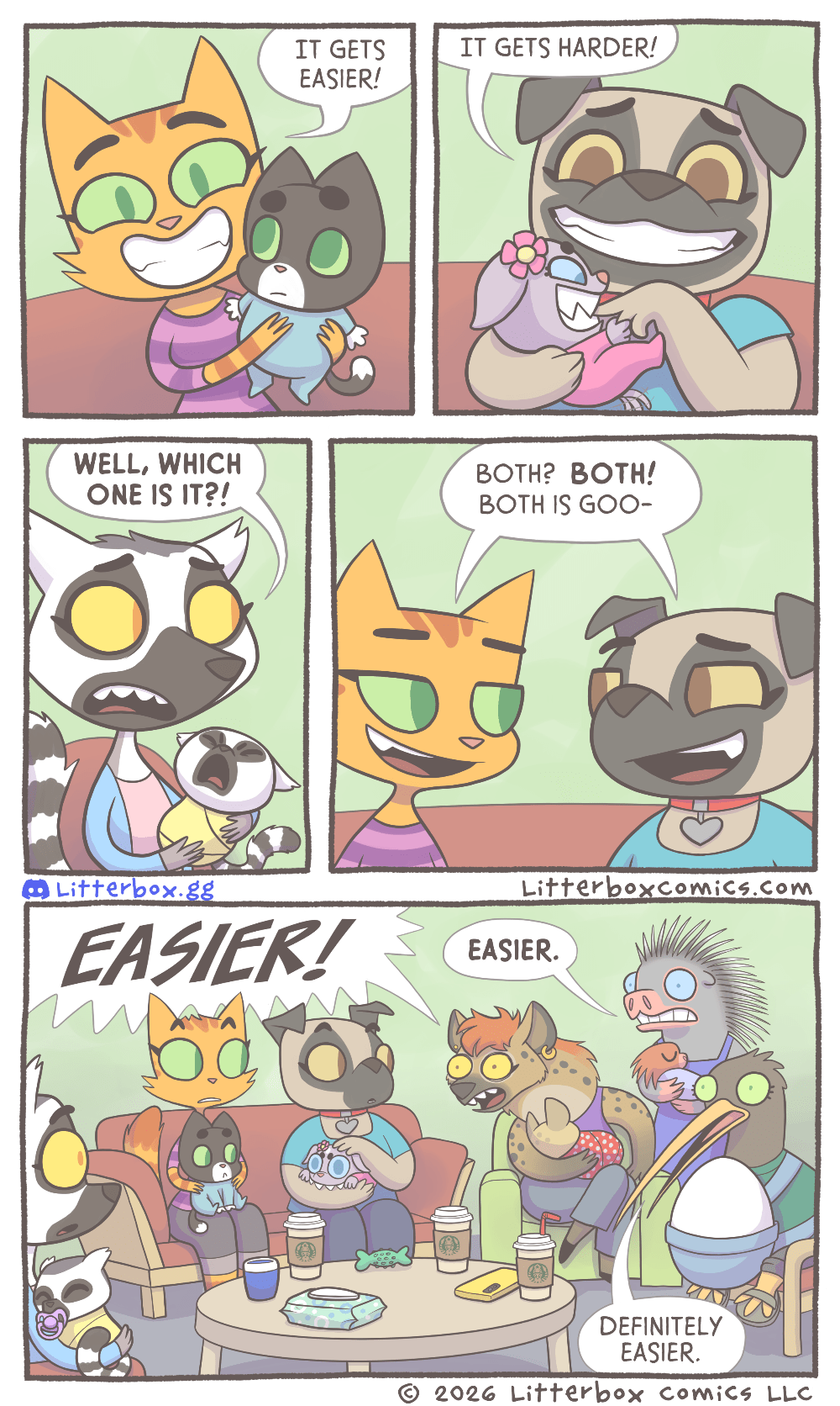 I dunno, the ‘kid is intelligent enough to go to the fridge and get food themselves’ and ‘kid no longer craps their pants’ is a hell of an upgrade. I haven’t made it to a point where things are harder than it was before either of those things.