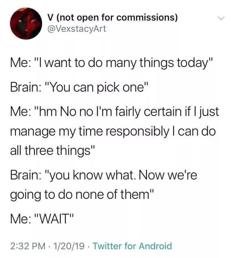 I do one task off my to-do list, then feel I earned a break and the rest is forgotten.
