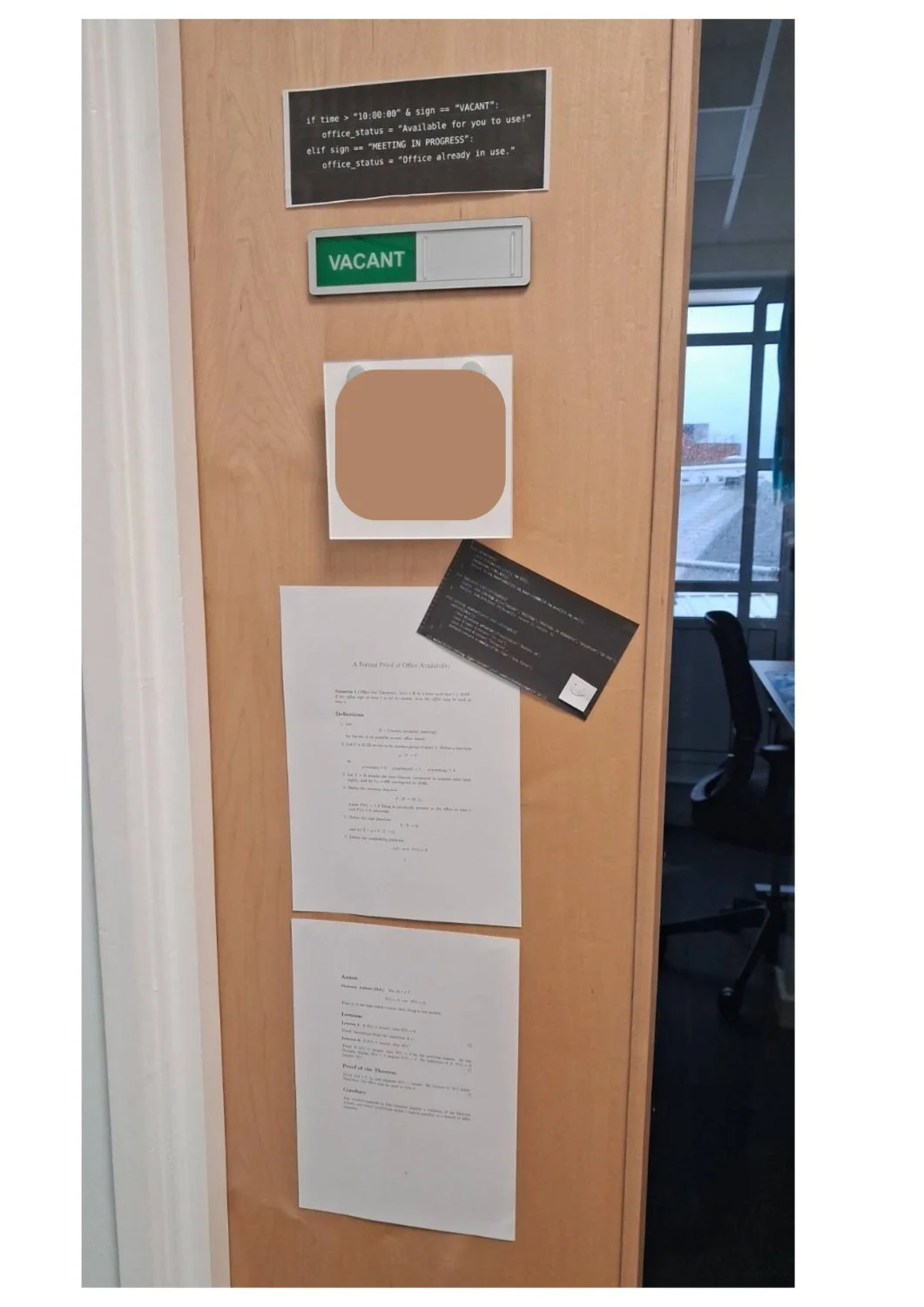 andthough (which I did naturally when I typed it into my interpreter to double-check), we get the issue that they are just using a string for the time rather than a time object. “Too early” is also a valid entry that gets us an available office.