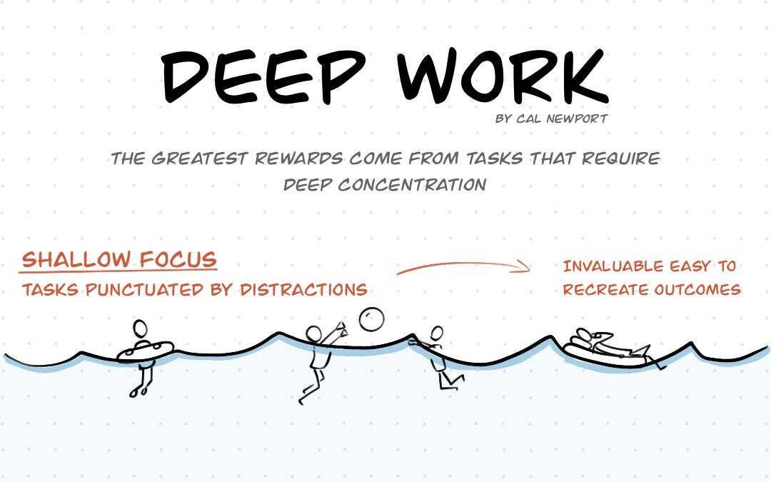 Which makes the diagram suggest that deep focus gets good results, but unfocused and distracted work gets the best results.
