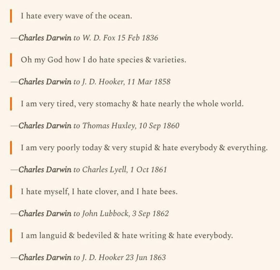 His health was so fucked it has its own wikipedia page: https://en.wikipedia.org/wiki/Health_of_Charles_Darwin