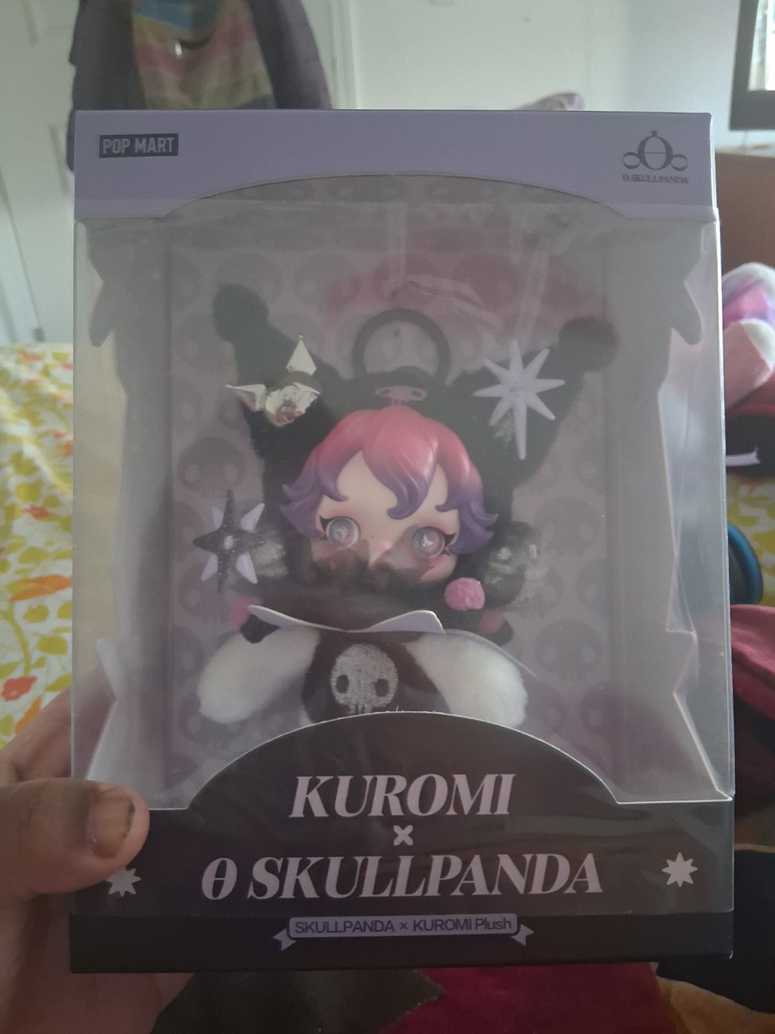 It was recently my birthday, and my dad and sister got me a Skullpanda. And I really wanted this specific Skullpanda plush pendant Because it was made and based on Kuromi, one of my favorite Sanrio characters as well as comfort characters in general