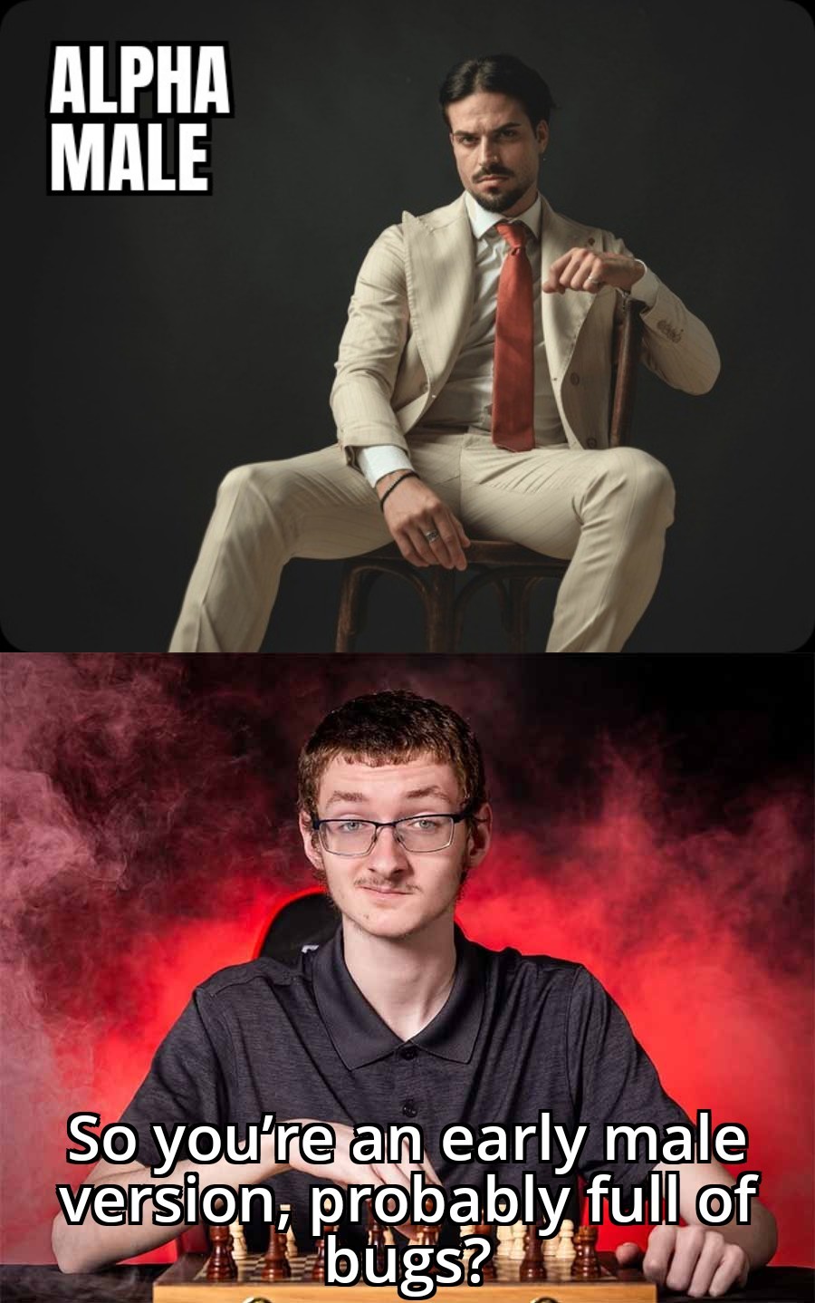 minus-squareUnderpantsWeevil@lemmy.worldlinkfedilinkEnglisharrow-up36arrow-down2·18 hours agoMales haven’t even hit beta yet? This explains a lot
