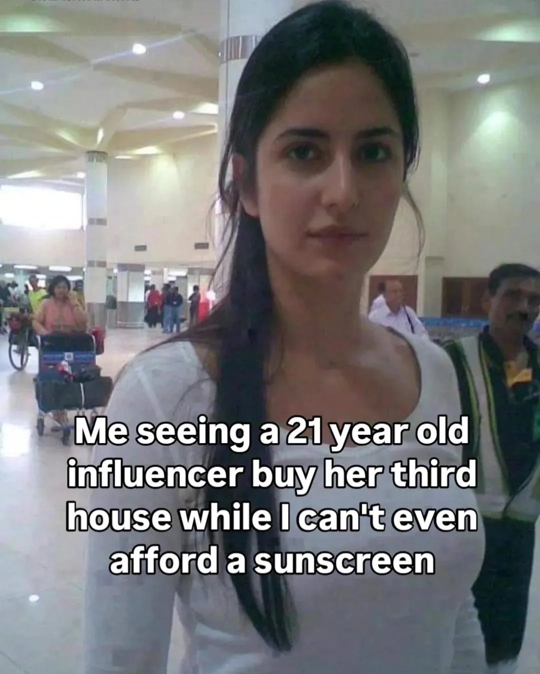 Transcription - Me seeing a 21 year old influencer buy her third house while I can’t even afford a sunscreen