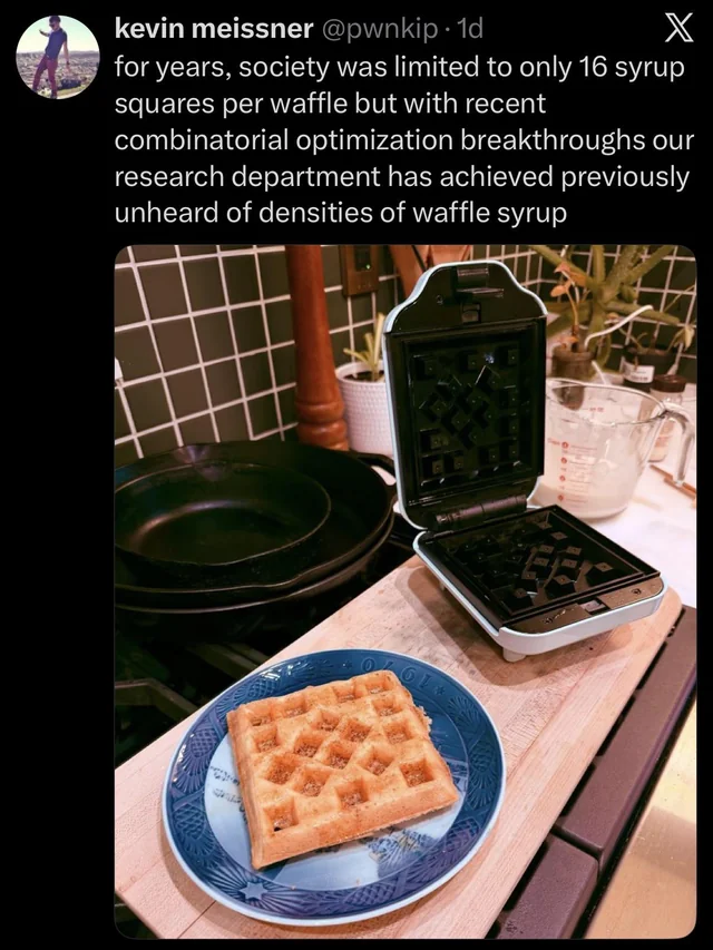 Yeah, it’s not at all an optimal waffle. It’s more a cool math meme waffle. ;3