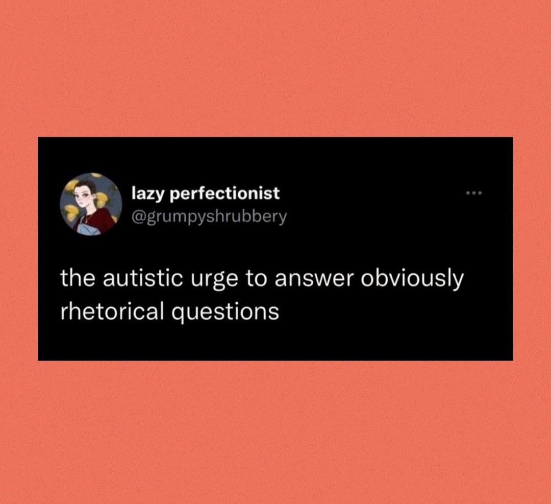 Also: Any sort of verbal interaction started with a rhetorical question is bound to suck extremely. Very likely to send me into a negative spiral TBH.