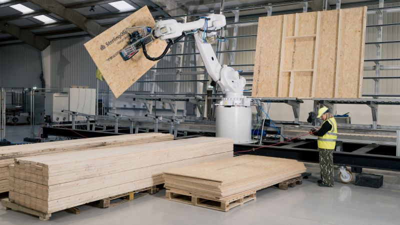 UK technology company Automated Architecture, or AUAR (pronounced “our”) believes it has a solution. It makes portable micro-factories that can produce the wooden framing of a house — the walls, floors and roofs. Co-founder Mollie Claypool says the micro-factories will be able to produce the panels quicker, cheaper and more precisely than a timber framing crew, freeing up carpenters to focus on the construction of the building.