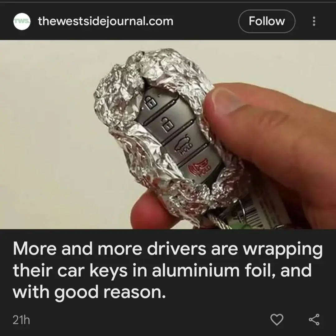minus-squareJuice@midwest.sociallinkfedilinkarrow-up5·1 month agoA little aluminum foil, a little keyfob, you could get a stew going!