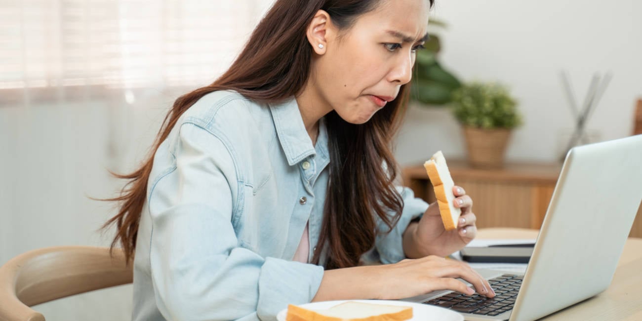 is that lady eating a plain slice of white bread