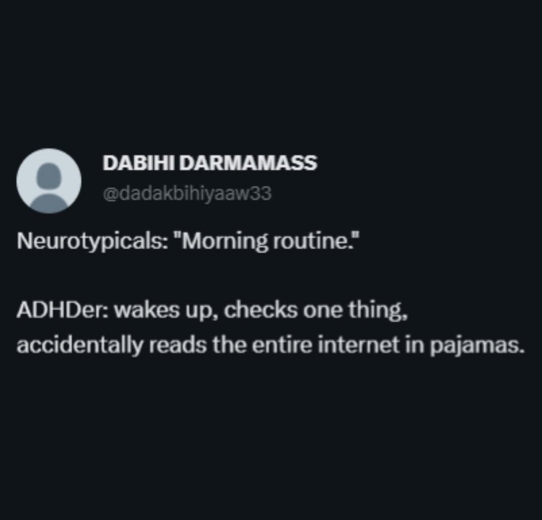 my family still thinks adhd is “hey look a squirrel disease” but every time I see a post about it I have an “oh fuck I’m literally doing that right now” moment and get more pissed off at them