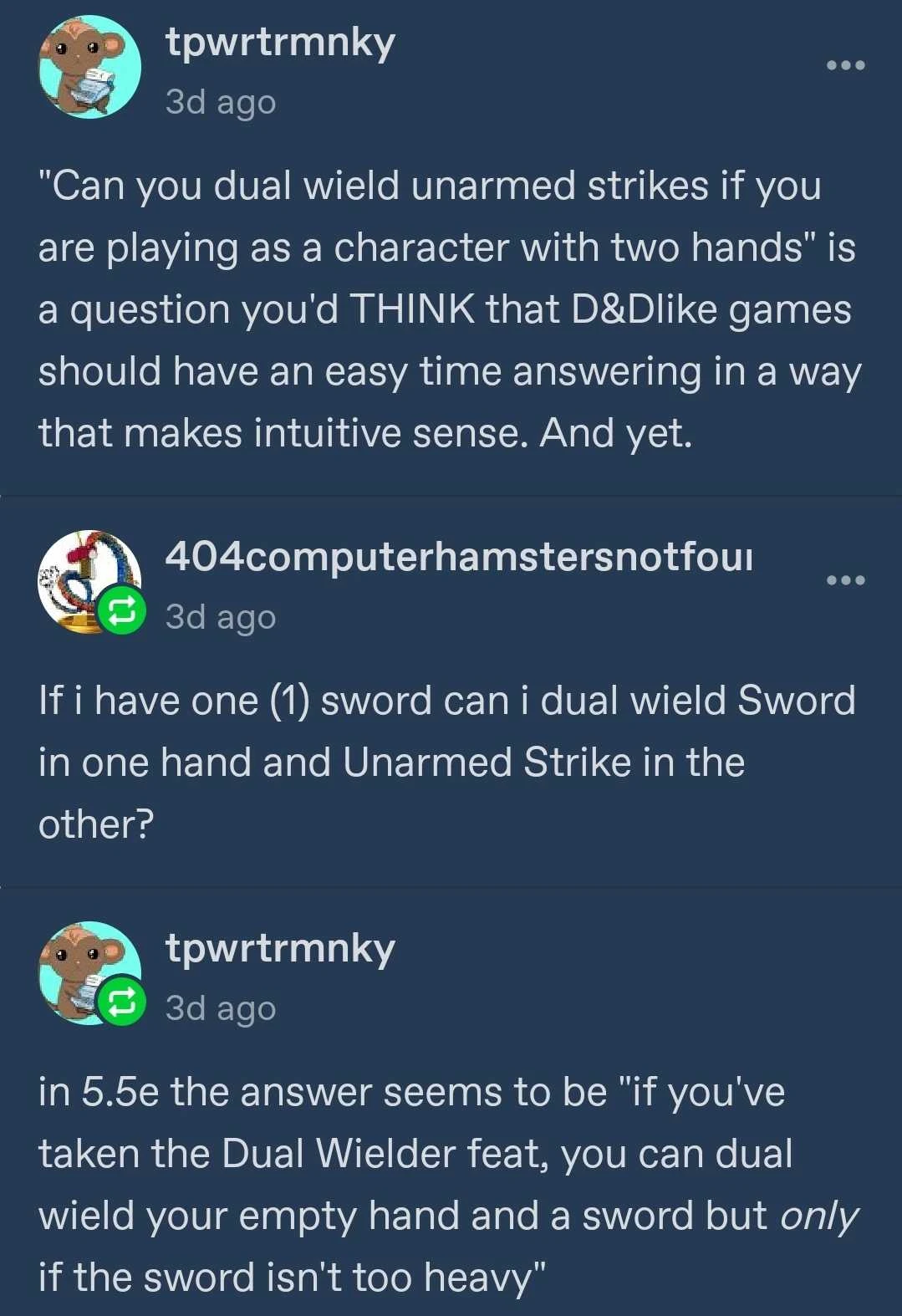 Thikreen have 4 arms. The secondary set can use Light weapons. Note that having 4 arms, each holding a Dagger or other light weapon doesn’t inherently grant any additional attacks.