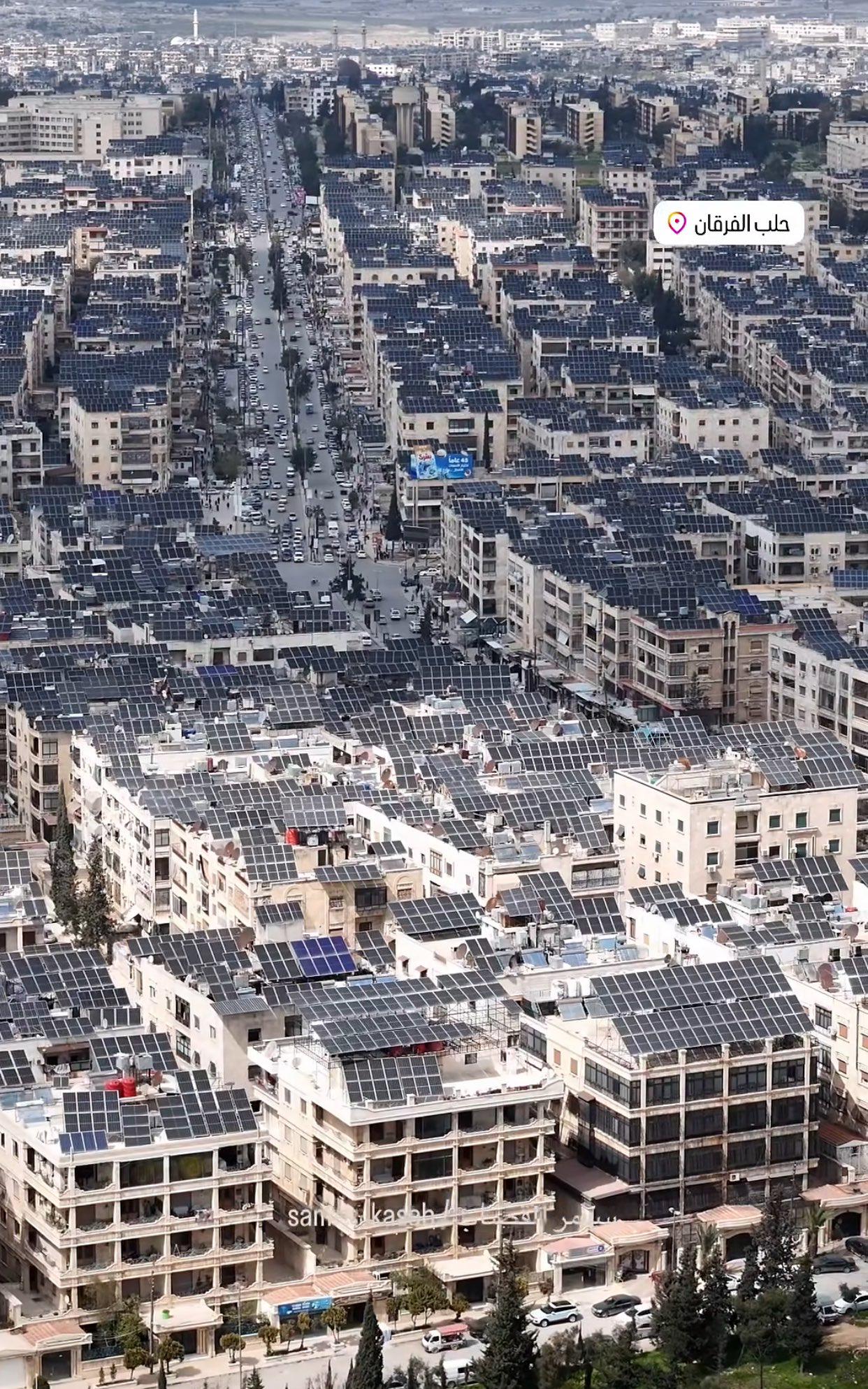 An usually wide adoption of rooftop solar in Aleppo, Syria.