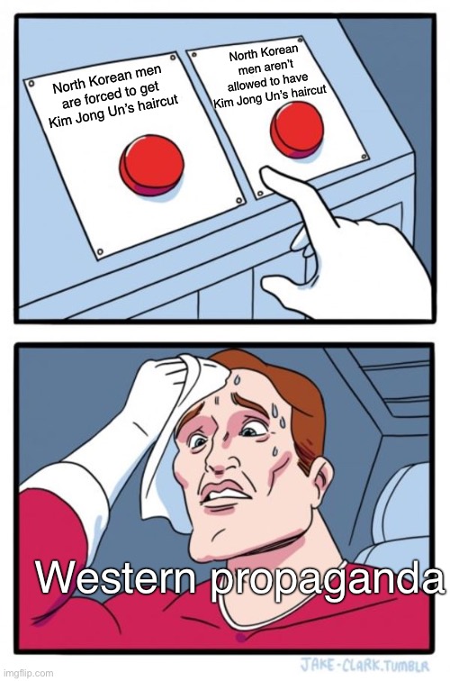 arrow-up170arrow-down1imageDPRK BAD BECAUSE HAIRCUT! -Lemmy libslemmy.mljankforlife@lemmy.ml to Memes@lemmy.ml · 2 days agomessage-square14fedilink