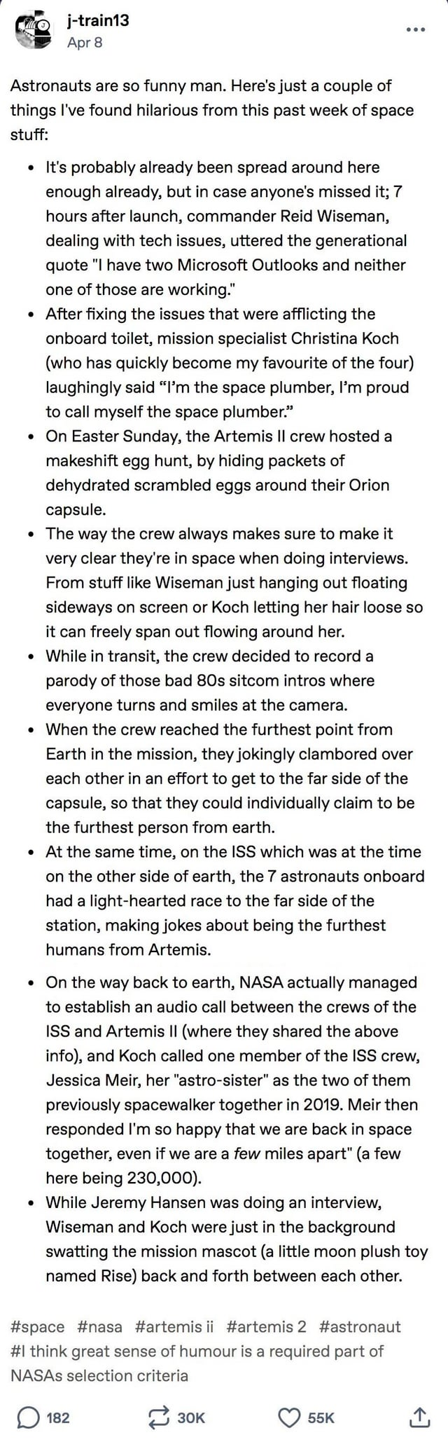 arrow-up1961arrow-down1imageAstronauts are funnymander.xyzfossilesque@mander.xyzM to Science Memes@mander.xyzEnglish · 3 days agomessage-square69fedilink