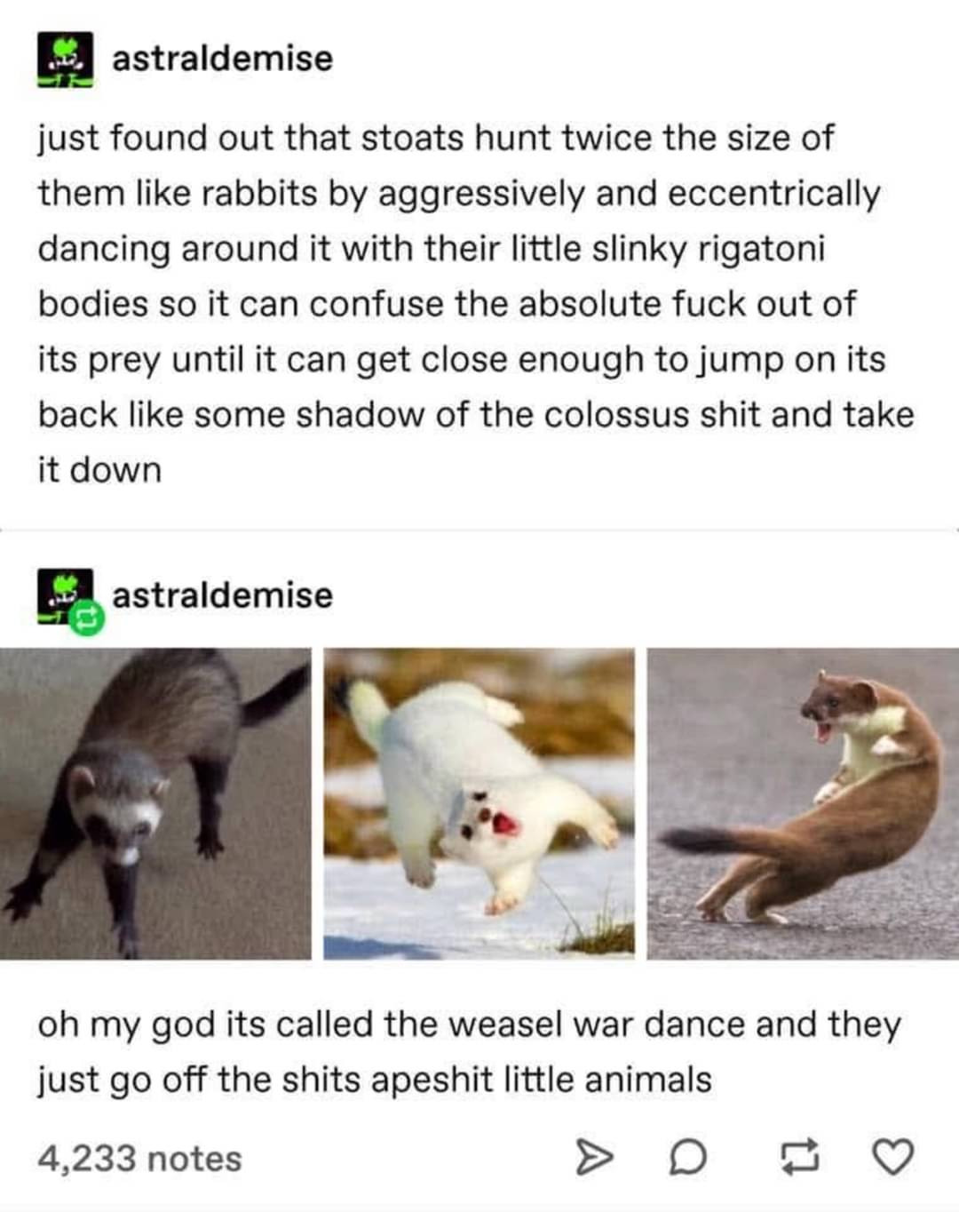 So it’s probably a bad idea to get a Weasel as a pet if you have cats, huh.