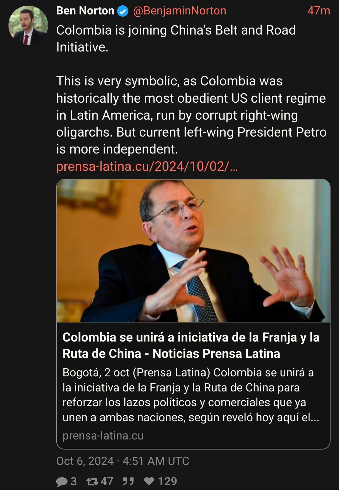 You are more likely to see China acting like this in insipid Canadian and 𝕌𝕊𝕠𝕟𝕚𝕒𝕟 TV shows, since you don’t have any real examples. The China debt trap is a myth cooked up by the transatlantic financial class for your gleeful consumption.