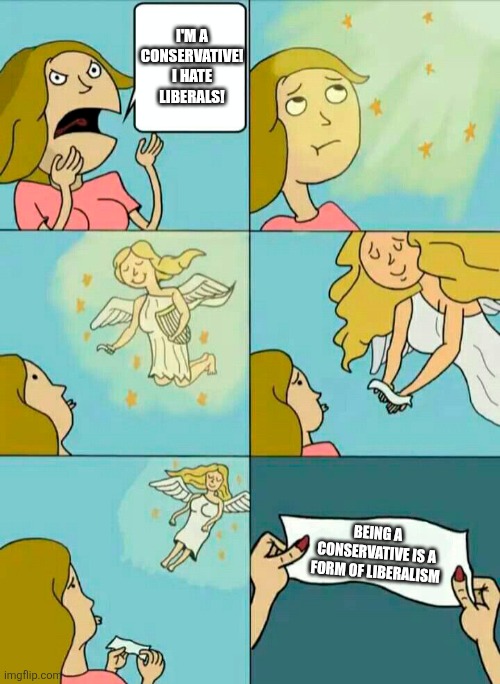 • I didn’t mean to imply that liberalism and conservativism are completely indistinguishable, but rather that conservative thought generally represents the right wing of liberalism in the west. Sorry if this was unclear.