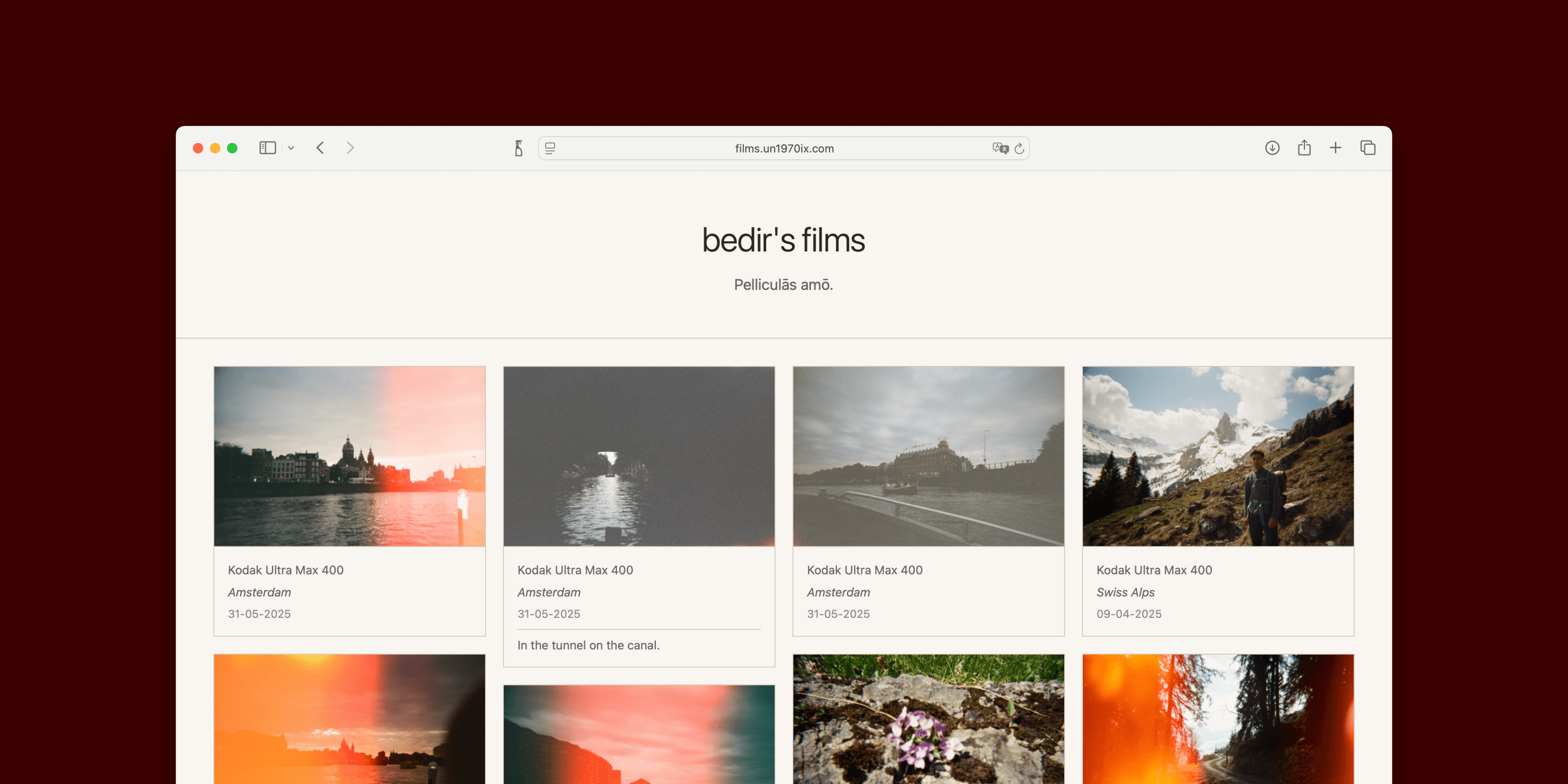 thanks! originally built this just for my own film photos, then added Exif support for digital and decided to share it. funny enough, your profile made me realize i never checked if there are analog photography communities on Lemmy. :D